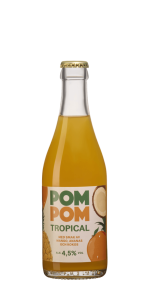 POMPOM Tropical är en fruktig cider på äppel- och päronmust, smaksatt med mango, ananas och en lätt touch av kokos för en tropisk känsla.